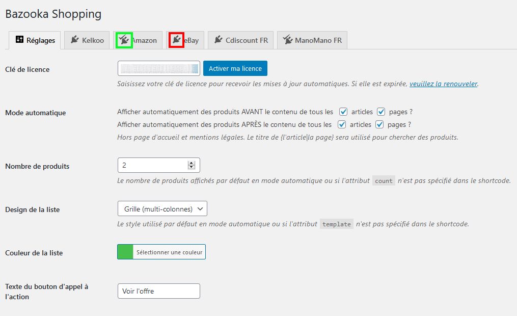 Les valeurs possibles sont : kelkoo, amazon, ebay, cdiscount, manomano.